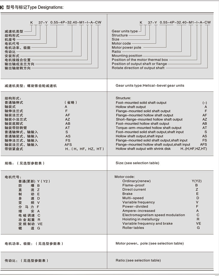 KF-轴伸式、法兰安装;KAF-轴装式、法兰安装